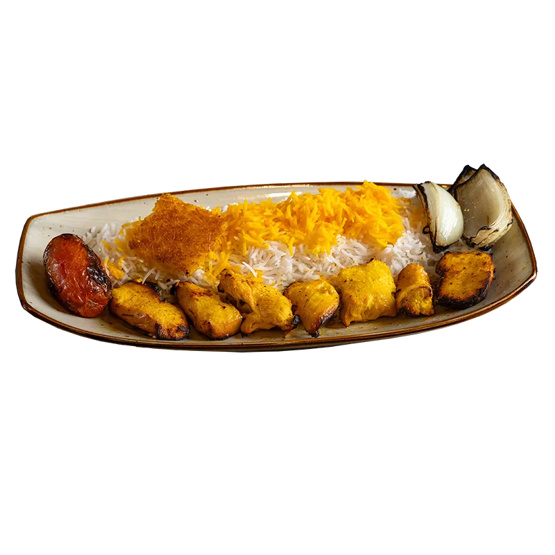 chicken tender and ground chicken served whit saffron basmati rice