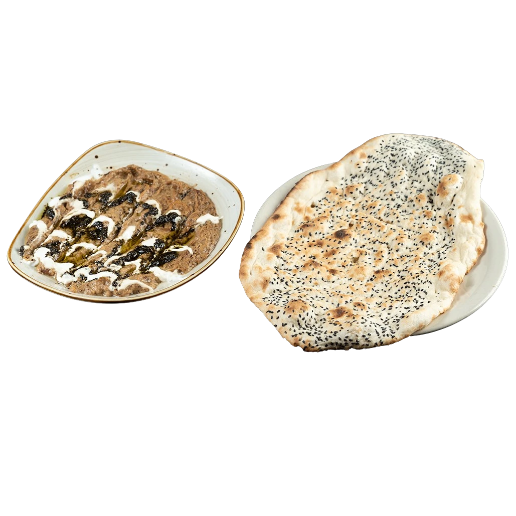 Mix of roasted eggplant, tomato & garlic, topped with a fried egg