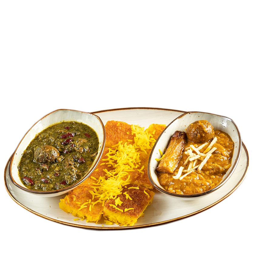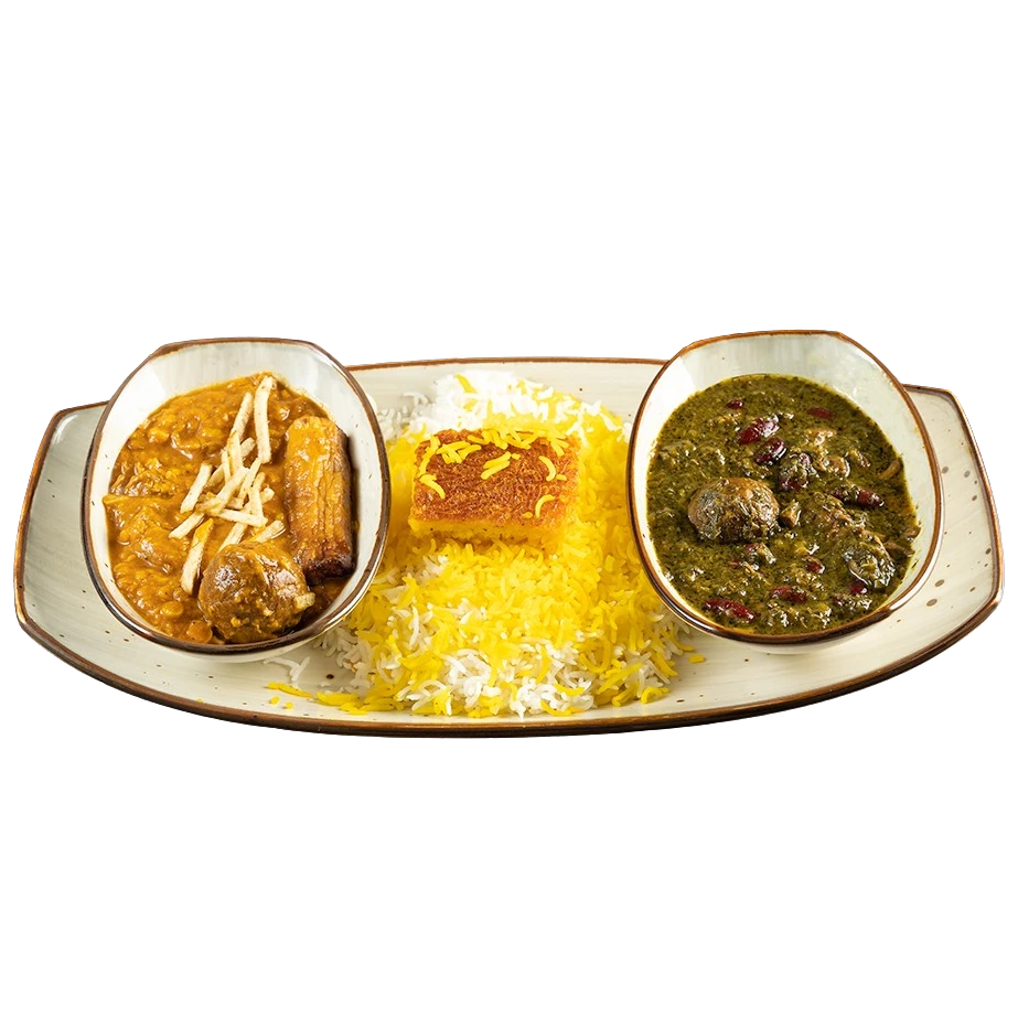 A combination of ghormeh sabzi and gheymeh.